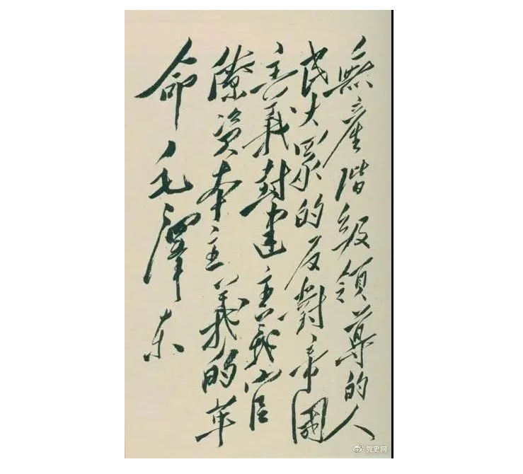 1948年4月1日,毛泽东在晋绥干部会议上讲话,阐明新民主主义革命的总路线和总政策。这是毛泽东关于总路线的题词。