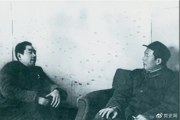 图为毛泽东和周恩来在河北西柏坡。