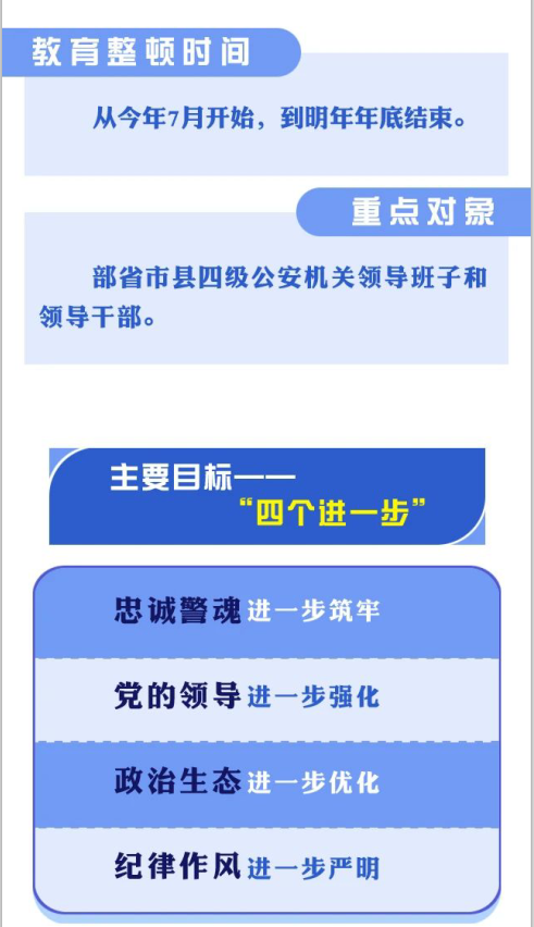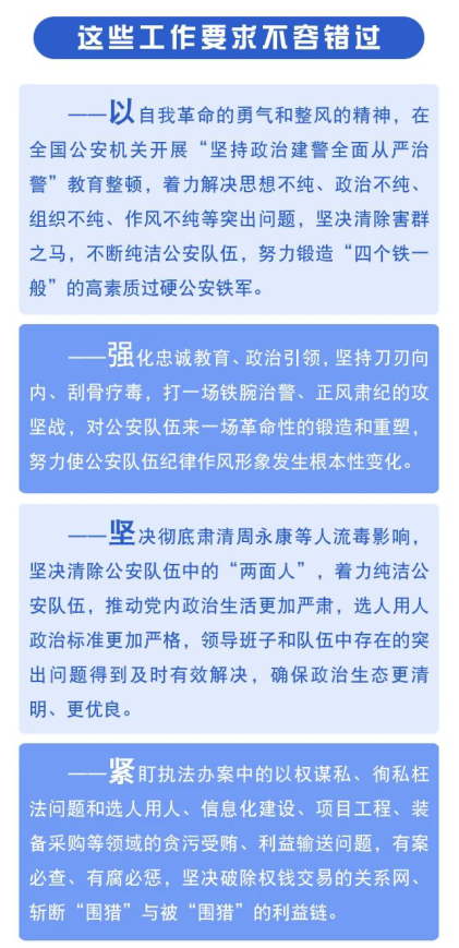 一图看懂公安机关开展“坚持政治建警 全面从严治警”教育整顿